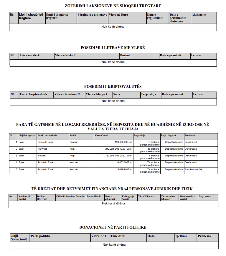 E njëjta del se ka një pasuri të madhe në banka. Rizvanolli ka deklaruar rreth 200 mijë euro para të gatshme.