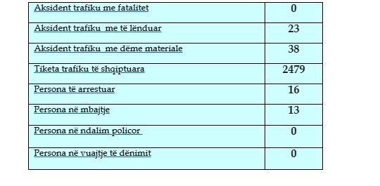 Në raportin e Policisë, bëhet e ditur se 23 aksidente kanë qenë me dëme materiale dhe 38 të tjera me të lënduar.