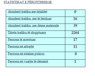 Gjatë 24 orëve të fundit janë raportuar 16 aksidente trafiku me të lënduar, dhe 39 me dëme materiale.
