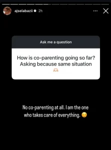 Ajsela Abazi, modelja dhe influencerja e njohur shqiptare, ka ndarë një moment në Instagram, ku ka folur hapur për situatën e saj si nënë dhe për bashkëprindërimin me ish-partnerin e saj, futbollistin Eros Grezda. Në një pyetje nga ndjekësit e saj që e pyetën: “Si po shkon bashkëprindërimi deri tani? Po të pyes sepse jam në të njëjtën situatë”, Ajsela u përgjigj me fjalët: