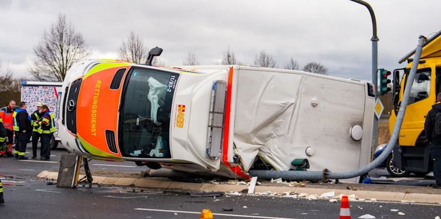 Një operacion emergjent në Gjermani u kthye në një aksident të rëndë rrugor, pasi një ambulancë që po transportonte një pacient u përplas në një kryqëzim, duke lënë pesë persona të plagosur.