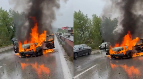 Nga pamjet e siguruara nga Top Channel shihet makina e cila ka marrë flakë.