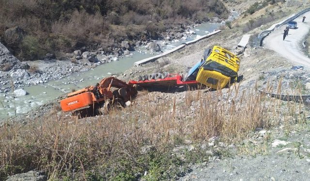 Një mjet i tonazhit të rëndë, i cili po transportonte një ekskavator, ka dalë nga karrexhata në rrethana ende të paqarta, duke përfunduar disa metra poshtë aksit nacional.