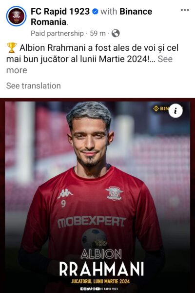 Albion Rrahmani është zgjedhur “Lojtari i muajit” për muajin mars te Rapid Bukureshti.