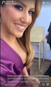 “Botox-in e kam bërë për herë të parë para dy vitesh, përpara fillimit të ‘Big Brother’, vetëm tek zona e ballit. Kisha tmerr, frikë normal, por që më pëlqeu rezultati dhe e ripërsërita pas 6 muajsh,” – tregoi ajo.