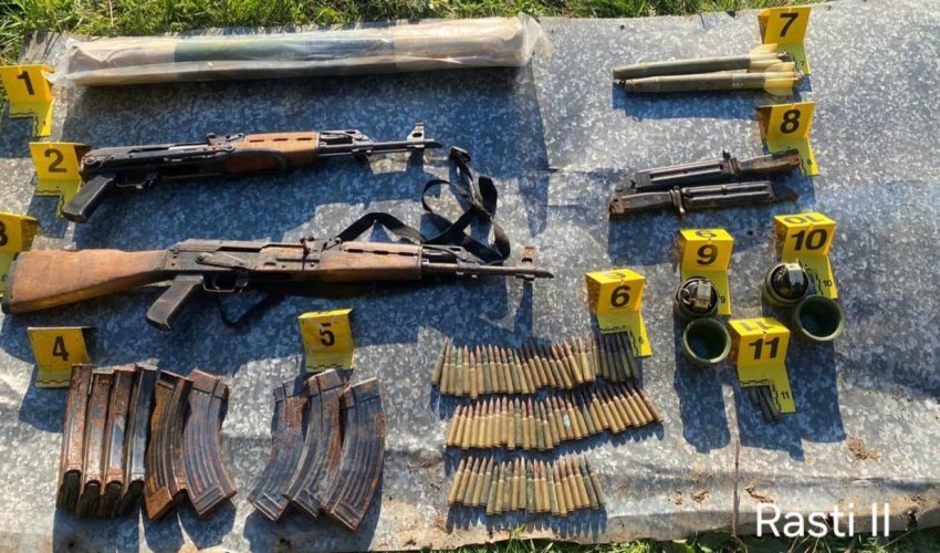 Edhe për rastin e dytë, njofton policia, informatat i ka pranuar sot, ku pas kontrollit të realizuar nga policia, në një shtëpi të braktisur janë gjetur dhe sekuestruar: 1 zollë; 2 trombllona; 2 granata dore M75; 2 armë AK-47; 9 karikator; 90 fishekë për armë të gjatë; 79 fishekë 11.53 mm ; 2 thika taktike