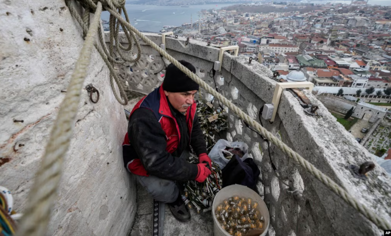 Në zemër të Stambollit, në majë të minareve të larta që kalojnë horizontin e qytetit, 68-vjeçari Kahraman Yildiz mundohet me një zanat që ka ndriçuar muajin e shenjtë mysliman të Ramazanit për breza.