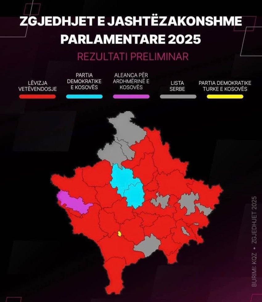 Lajme Harta e Kosovës bëhet ‘e kuqe’ nga fitorja e Vetëvendosjes, ja partitë e tjera 📅 29.12.2025 👁 2