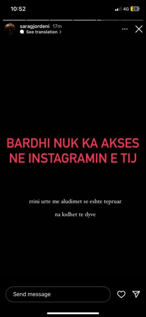 Pas largimit të tij, menaxheri i Bardhit fshiu çdo foto me Sarën nga Instagrami i Bardhit dhe madje as nuk i bëri “follow”.