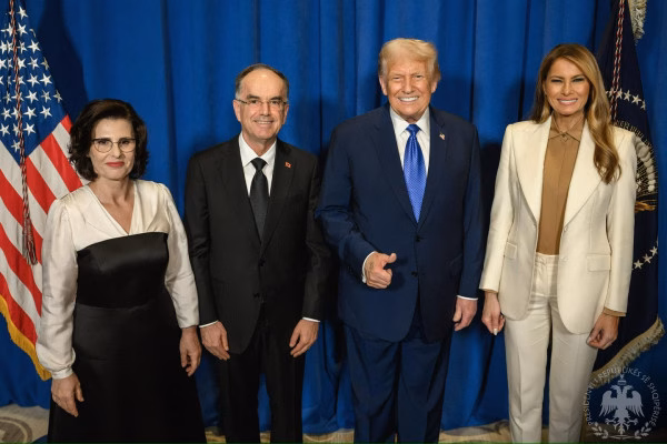 Presidenti i Shqipërisë, Bajram Begaj dhe Zonja e Parë, Armanda Begaj në kuadër të vizitës në Shtetet e Bashkuara të Amerikës, kanë realizuar fotografinë e përbashkët me presidentin e ShBA-së, Donald Trump dhe zonja e parë Melania Trump.