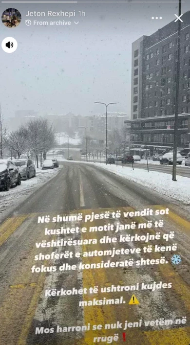 “Në shumë pjesë të vendit, sot kushtet e motit janë më të vështirësuara dhe kërkojnë që shoferët e automjeteve të kenë fokus dhe konsideratë shtesë. Kërkohet të ushtroni kujdes maksimal. Mos harroni, nuk jeni vetëm në rrugë”, ka shkruar ai.