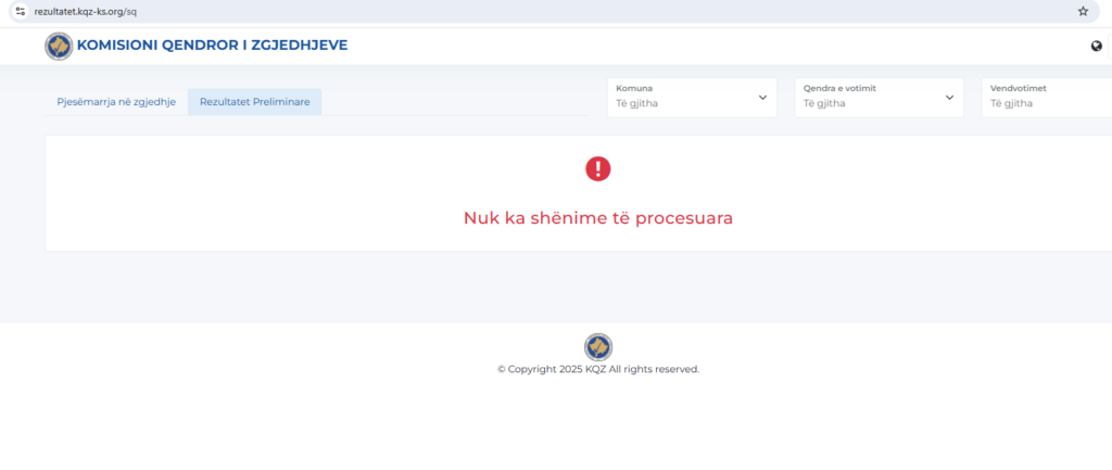 Në uebfaqen e Komisionit Qendror të Zgjedhjeve janë paraqitur sërish probleme.