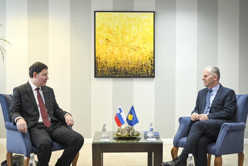 Ky i fundit, shoqërohej nga ambasadori i Sllovenisë në Kosovë, Borut Blaj. Së bashku diskutuan rreth zhvillimeve në vend dhe situatës në rajon.