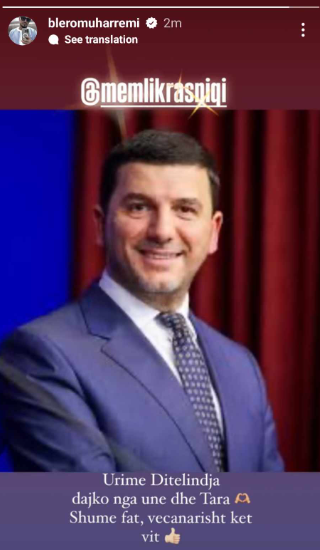 Blero Muharremi, këngëtar i njohur dhe ish-banor i Big Brother VIP Kosova, ka bërë një urim të veçantë për kryetarin e PDK-së, Memli Krasniqi.