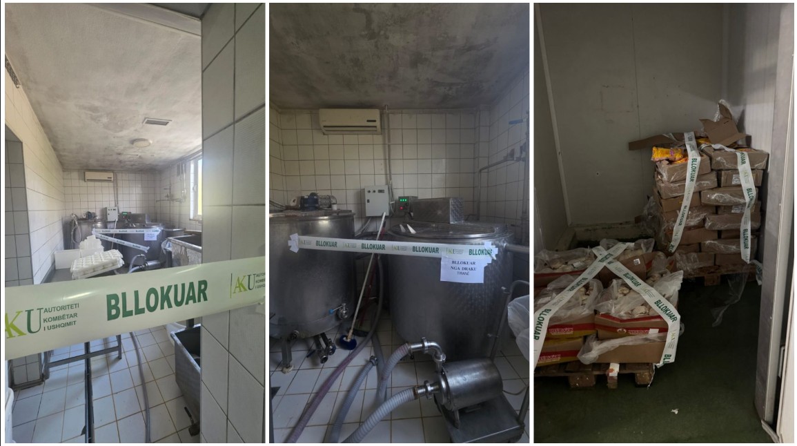 “Gjatë kontrollit zyrtar në subjektin “Bonum” (Baxho), trupa inspektuese konstatoi kushte higjieno-sanitare të papërshtatshme, si dhe prani të mykut, ndryshkut dhe lagështisë në ambientin e përpunimit. Për këto shkelje, u mor masa e menjëhershme e bllokimit të aktivitetit si dhe bllokimi i produktit të pasigurt: 328.7 (triqind e njëzet e tetë pikë shtatë) kg djathë i bardhë dhie. Ndaj subjektit u mor masa administrative “Gjobë” në vlerën e 300.000 (triqind mijë) lekë për ushtrim të aktivitetit në kundërshtim me kërkesat ligjore mbi kushtet e përgjithshme dhe të veçanta të higjienës së ushqimeve.“, thuhet në njoftim.