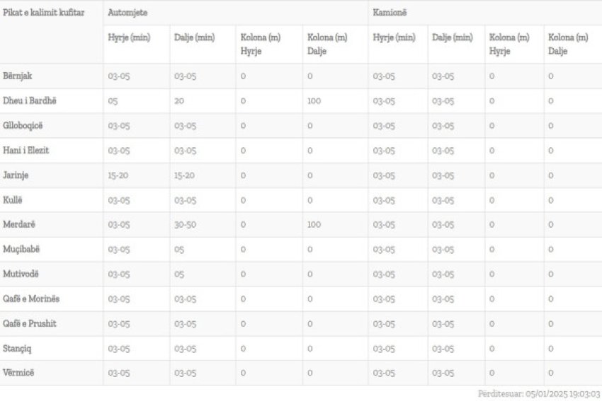 Lajme Pritje nĂ« mĂ« shumĂ« se dy orĂ«- Kjo Ă«shtĂ« gjendja momentale nĂ« pikat kufitare đ 05.01.2025 đ 2