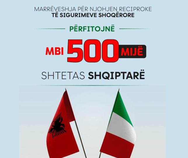 Lajme Mbi 500 mijë shqiptarë do të përfitojnë nga marrëveshja me Italinë për njohjen e Sigurimeve Shoqërore 📅 06.02.2024 👁 0
