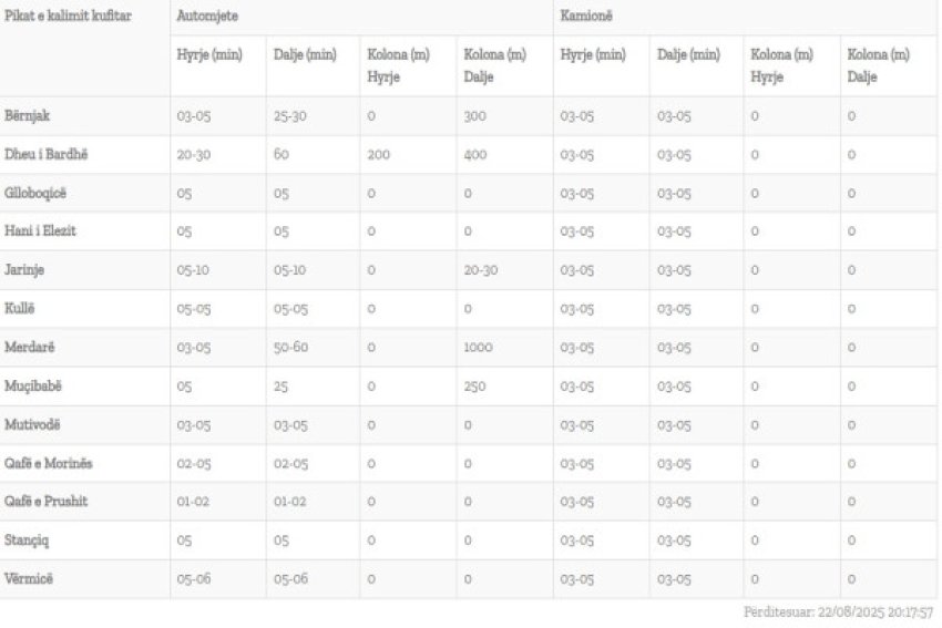 Lajme Fluksi i automjeteve, në këto dy pika të kalimeve kufitare vazhdojnë pritjet e gjata 📅 22.08.2025 👁 0