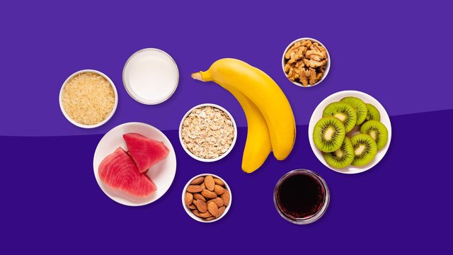 Ushqimet e pasura me triptofan, si vezët, kosi dhe arrat, si dhe perimet dhe frutat, ndihmojnë prodhimin e melatoninës, hormonit që rregullon gjumin.