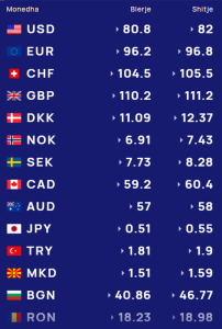 Për kursin e monedhave të tjera shihni tabelën e mëposhtme: