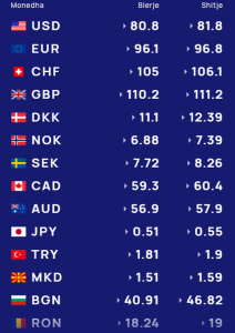 Për kursin e monedhave të tjera shihni tabelën e mëposhtme: