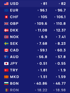 Për kursin e monedhave të tjera shihni tabelën e mëposhtme: