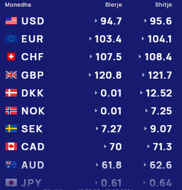 Më poshtë, po sjellim të dhënat e këmbimin valutor, për të gjitha monedhat e huaja: