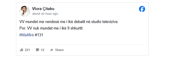 “VV mundet me vendosë me i ikë debatit në studio televizive. Por, VV nuk mundet me i ikë 9 shkurtit”, ka thënë Çitaku.