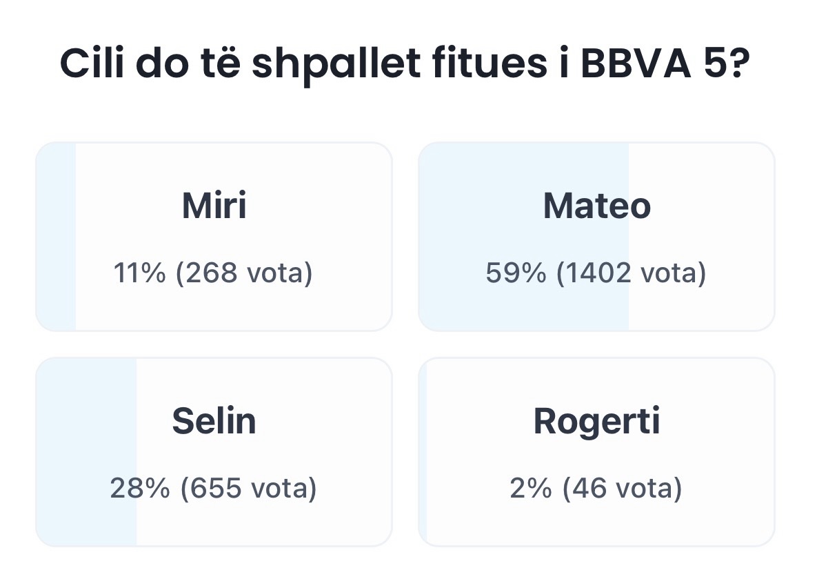 Ndërkohë, Miri ka marrë 11 për qind të votave, ndërsa Rogerti mbetet i fundit me vetëm 2 për qind mbështetje.