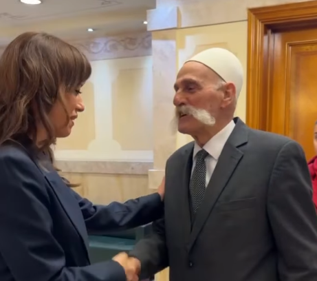 Para nisjes së seancës solemne për nder të Ditës së Shpalljes së Pavarësisë së Kosovës, kryetarja e re e Kuvendit, Albulena Haxhiu priti në zyrë bacën Rifat Jashari.
