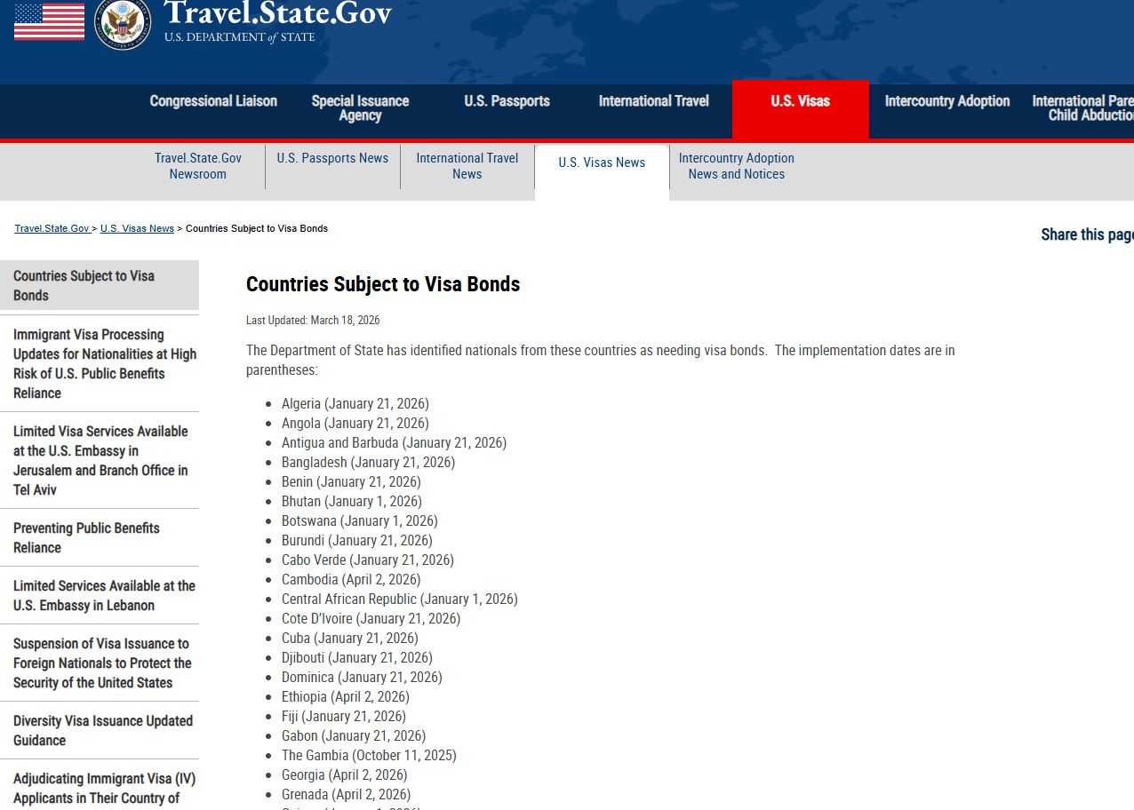Departamenti Amerikan i Shtetit, administrata e presidentit amerikan Donald Trump, ka vendosur një masë të re që detyron qytetarët e disa vendeve të depozitojnë deri në 15 mijë dollarë garanci për të marrë vizë hyrjeje në SHBA.
