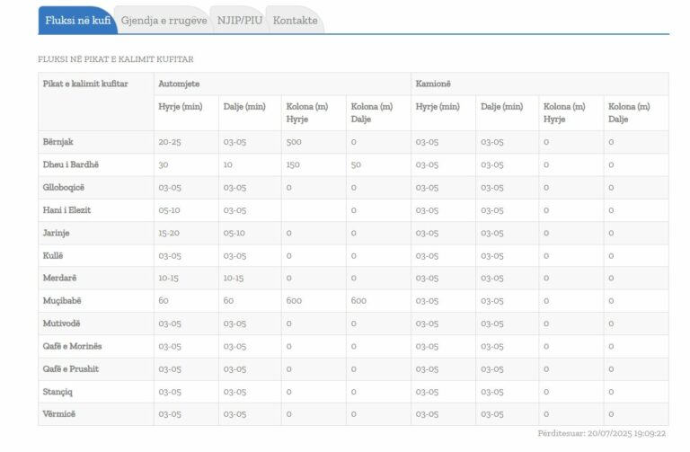 Deri në gjysmë orë, bazuar në këto të dhëna, pritjet janë te Dheu i Bardhë, derisa në Bërnjak po pritet deri në 25 minuta.