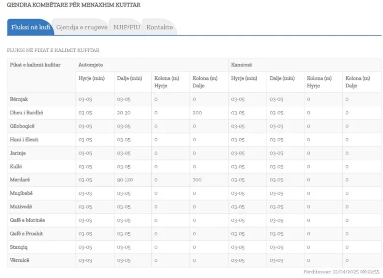 Sipas të dhënave të përditësuara pas orës 8:00 pritjet në pikat e tjera kufitare janë të shkurtra.