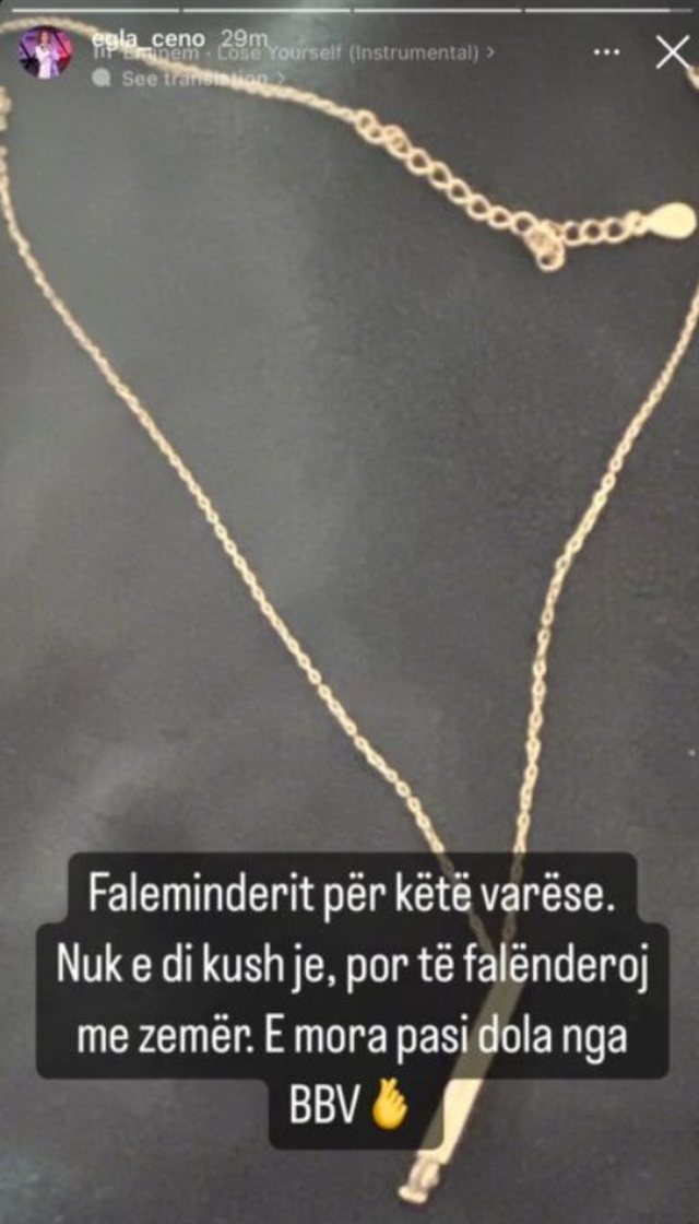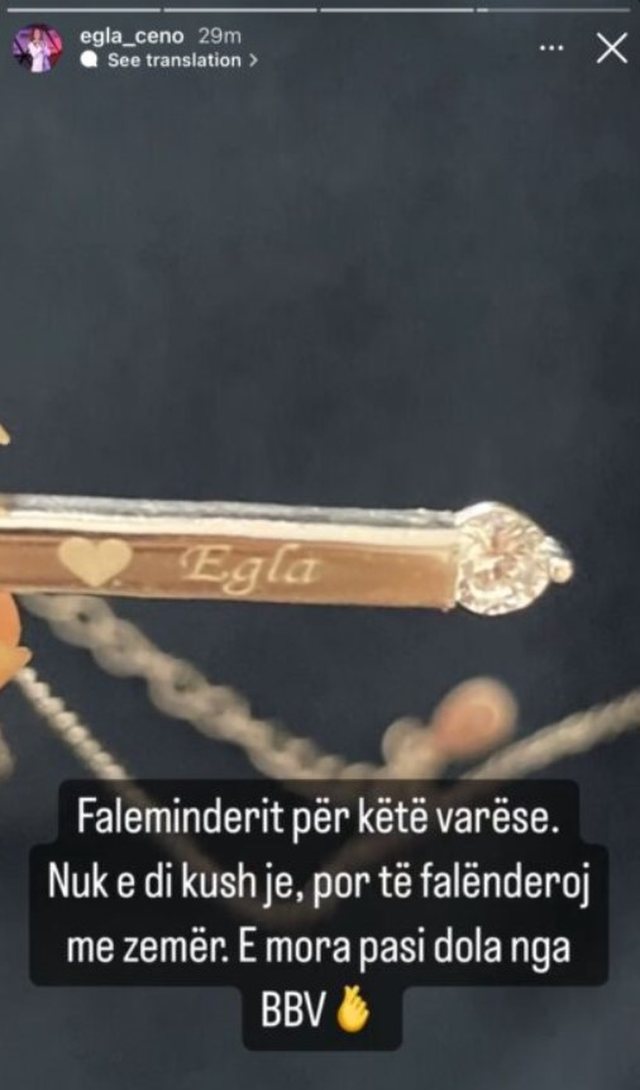 Ditën e sotme ajo ka ndarë me ndjekësit një surprizë të bërë nga mbështetësit e saj. Ajo ka postuar në Instagram për të falenderuar për surprizën, një video të një varseje të personalizuar ku shkruhet “ Egla, nuk je vetëm, unë jam si ti”.
