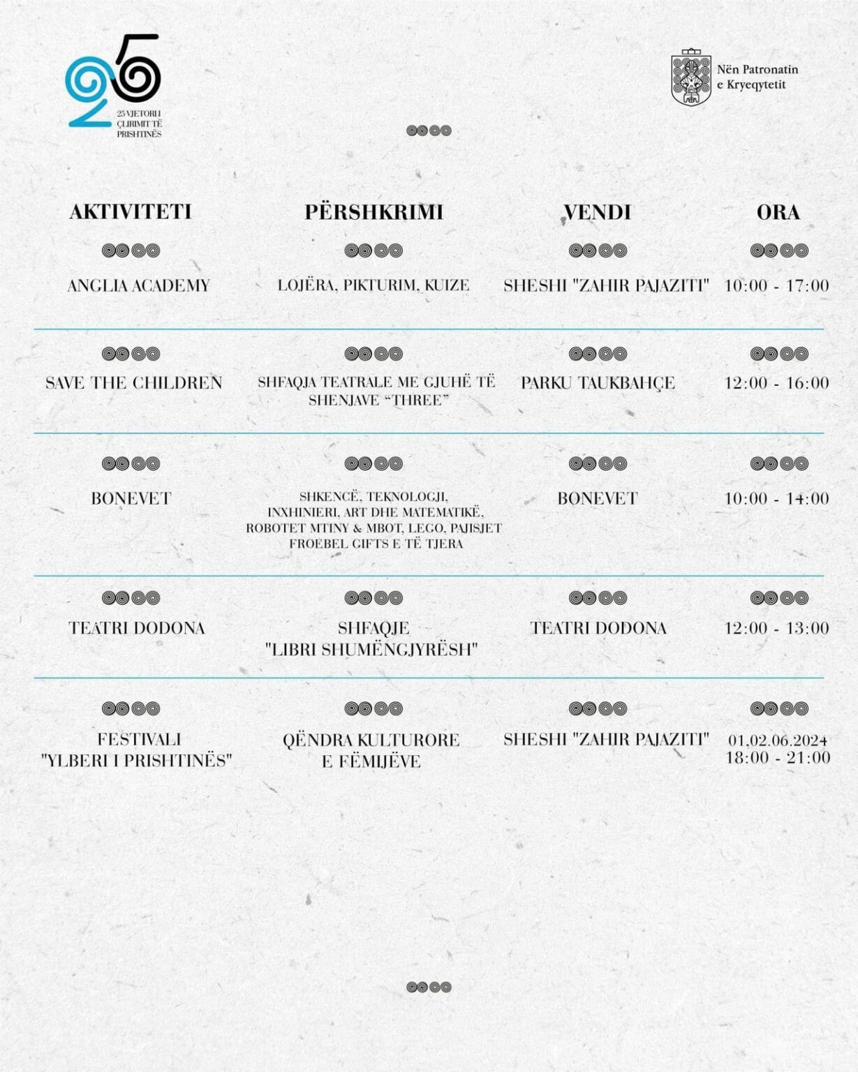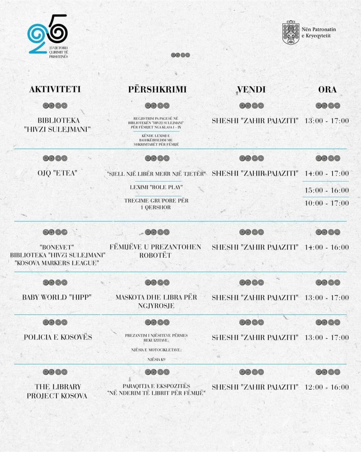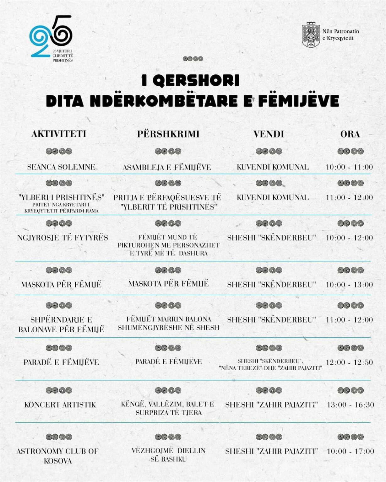 Me rastin e kësaj dite, aktivitete të larmishme gjatë ditës në sheshet e kryeqytetit do të organizohen nga Komuna e Prishtinës.