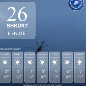 Ditën e sotme vendi ynë do të ndikohet nga kushte atmosferike të qëndrueshme. Sipas Shërbimit Meteorologjik Ushtarak moti parashikohet i kthjellët në të gjithë territorin.