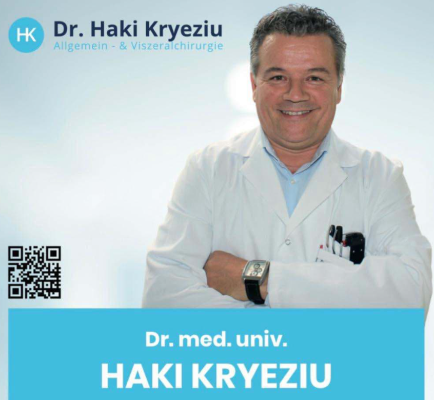 Ndër këta emra, edhe Dr. Haki Kryeziu, që është kryemjek i Kirurgjisë në Klinikat Universitare të Salzburgut (SALK) që nga viti 2015 dhe ka hapur një ordinancë private në Salzburg në vitin 2022, ku ofron shërbime si mjek familjar dhe kirurg i viscerale. Ai ka shkuar në Austri në vitin 1991 si stazhier i sapo diplomuar nga Universiteti i Prishtinës. Lufta në Kosovë e ndihmoi të angazhohej në ndihma humanitare për vendlindjen.