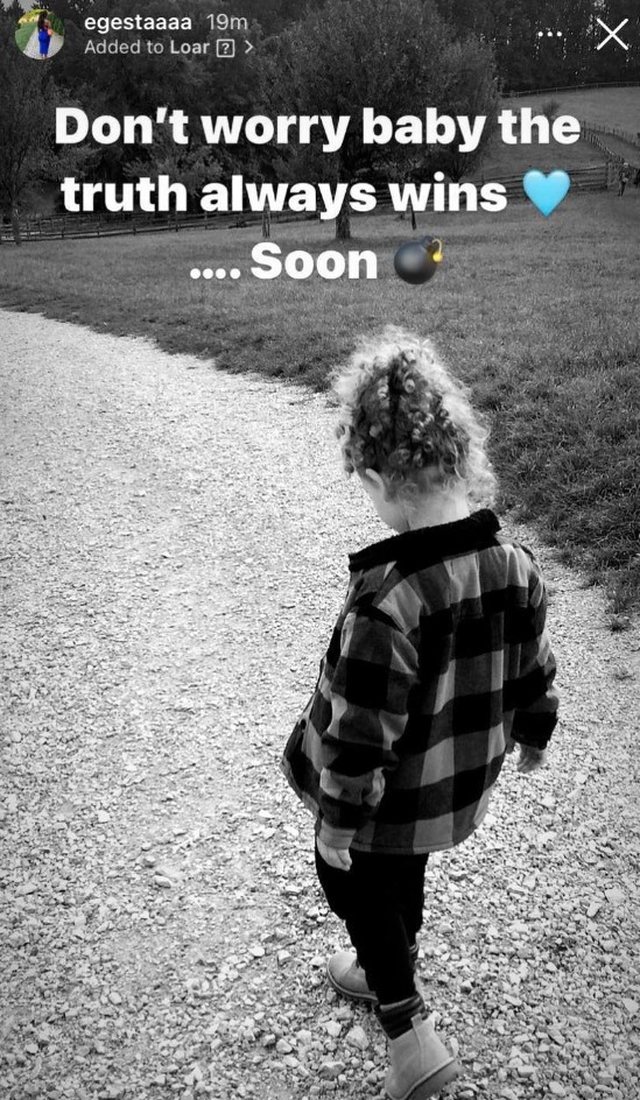 “Mos u shqetëso baby e vërteta gjithmonë fiton…Soon…”, ishte mbishkrimi i saj në foton e djalit të tyre duke nënkuptuar “së shpejti do plas “bomba”‘ përmes një “emoji”.