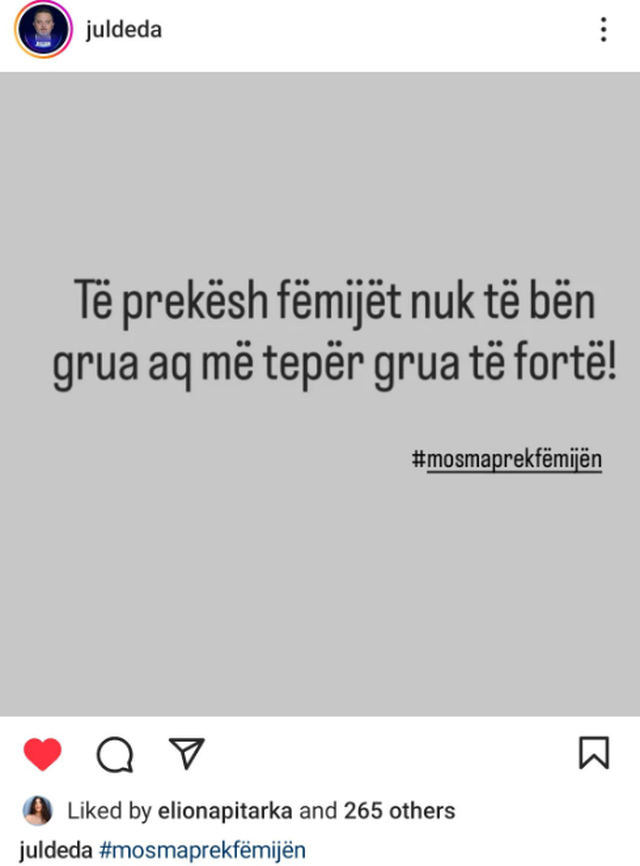 “Të prekësh fëmijët nuk të bën grua aq më tepër grua të fortë!“, thuhet në postim.