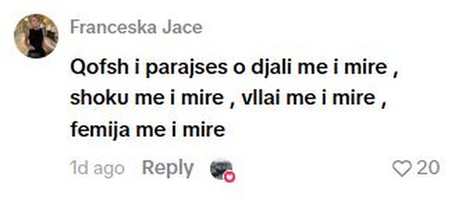“Qofsh i parajsës o djali me i mire , shoku me i mire , vëllai me i mire , fëmija me i mire”, shkruan Jaçe.