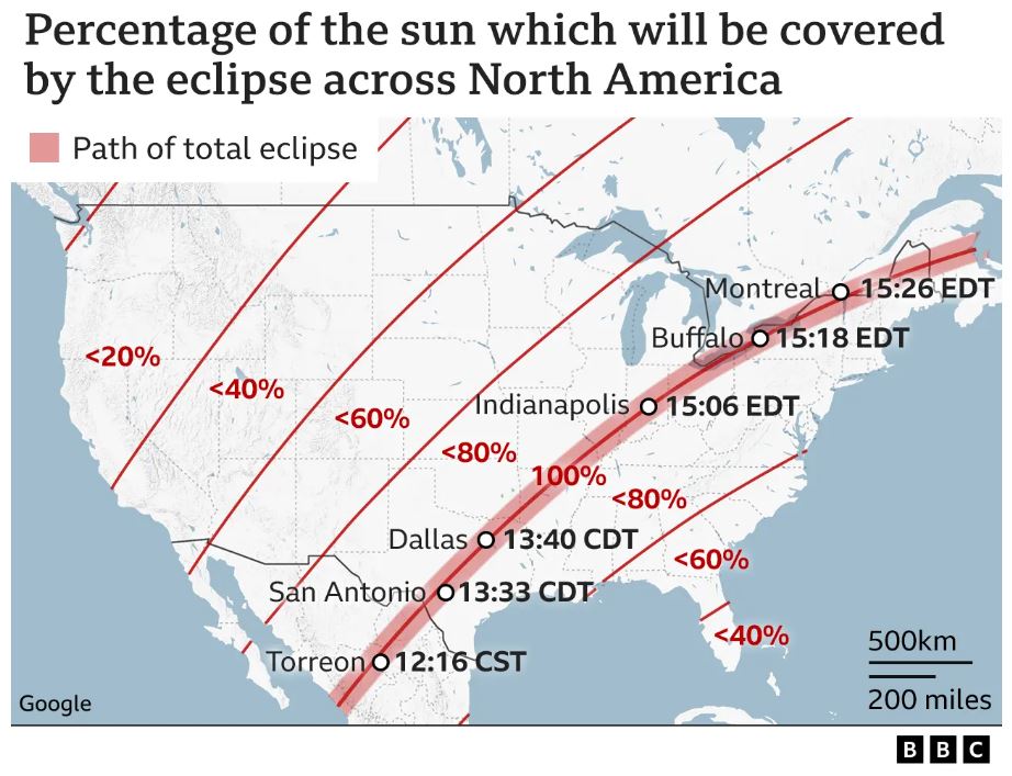 Ethet e eklipsit po fillojnë. Miliona njerëz në Amerikën e Veriut shpresojnë të kalojnë rreth katër minuta errësirë totale ndërsa Hëna bllokon dritën e Diellit të hënën.