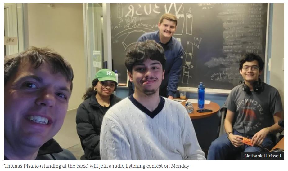 Thomas Pisano, një student i inxhinierisë elektrike me Dr Frissell, planifikon të konkurrojë. I ulur në tavolina me pajisje radio, ai do të dërgojë sinjale dhe do të përpiqet të lidhet me sa më shumë operatorë në mbarë botën.