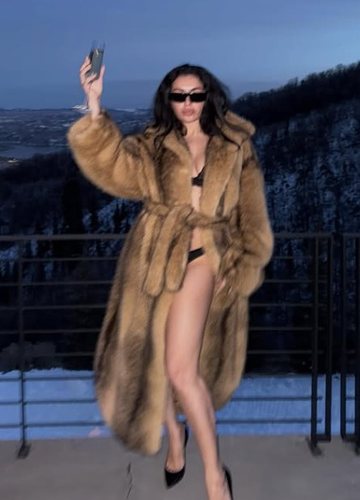 Në disa fotografi të ndara në Instagram, Charli XCX shfaqet e veshur me të brendshme të zeza, taka të larta dhe një pallto luksoze prej leshi artificial, duke sfiduar temperaturat e ulëta dhe duke treguar plot vetëbesim. Me një gotë shampanjë në dorë, ajo rrëmben vëmendjen, ndërsa pamjet e saj nga shtëpia luksoze ku qëndroi u pritën me komente pozitive nga fansat, të cilët e quajtën “mbretëreshë bore”.