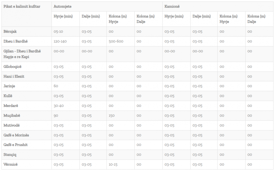 Në pikat e tjera kufitare, pritjet nuk janë më shumë se 5 minuta.