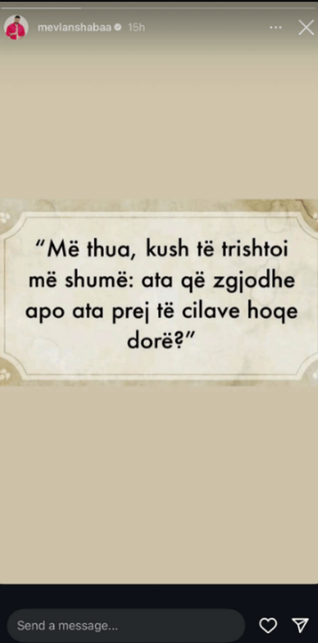 Në “Instastory” ka publikuar një thënie e cila mendohet se është thumb ndaj ish partneres së tij.
