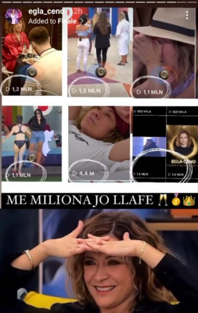 Një postimin e bërë vjet në Instagram, shihet Luizi i cili fik dritat e shtëpisë dhe ka arritur 33 mijë pëlqime dhe rreth 650 mijë shikime. Kurse postimi i Eglës ku ajo fik dritat e shtëpisë së sezonit të tretë, ka marrë 10 mijë pëlqime dhe mbi 850 mijë shikime. Ky kontrast është veçanërisht interesant, pasi tregon se Egla ka tejkaluar numrin e shikimeve të videos së Luizit.