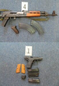 Një pushkë automatike e llojit AK-47 me dy karikatorë dhe 566 fishekë;