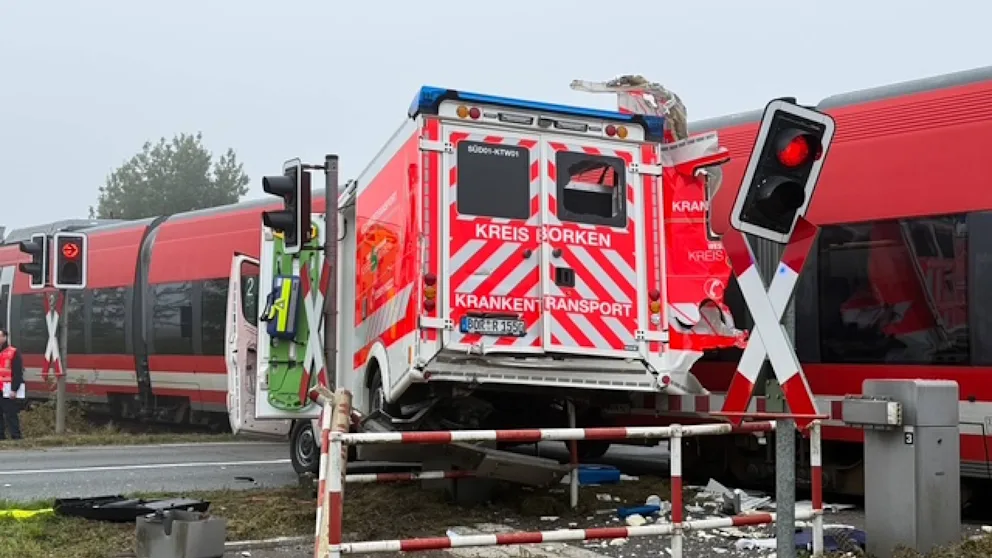 Siç raporton Bild në ambulancën që ishte e parkuar në shina, u lënduan pesë persona.