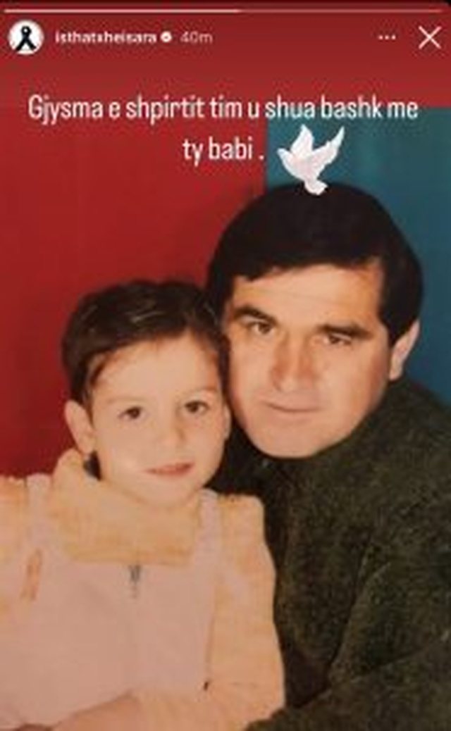 Nëpërmjet një statusi të ndjerë në rrjetin social ‘Instagram’, shoqëruar me një fjongo të zezë, artistja ka treguar se babai i saj ka ndërruar jetë.