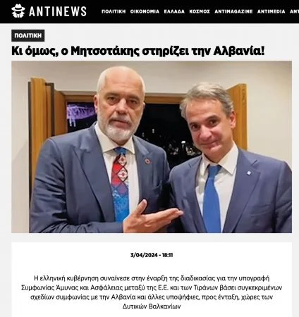 Qeveria greke, pavarësisht deklaratave publike të një qëndrimi të palëkundur ndaj kryeministrit Edi Rama dhe mes thashethemeve për përfshirjen e kryetarit të burgosur të Bashkisë së Himarrës Fredi Beleris, në listën për kandidatët e Demokracisë së Re për PE, ra dakord të nisë procesin për nënshkrimin e një Marrëveshja e Mbrojtjes dhe Sigurisë ndërmjet Bashkimit Evropian dhe Shqipërisë.